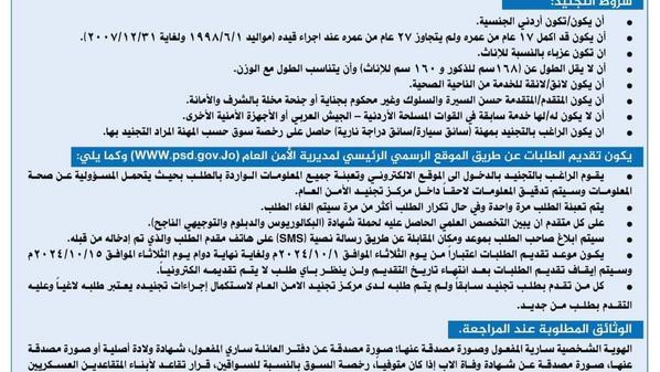 الأمن يفتح باب التجنيد للذكور والاناث ويعلن الشروط والتفاصيل