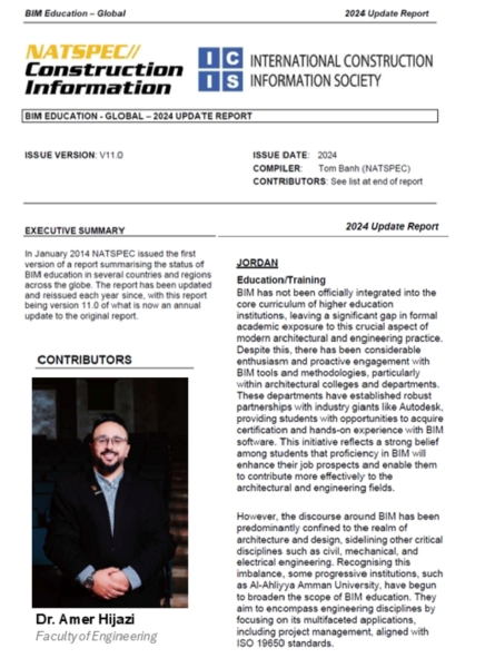 فيما تخضع المؤسسات العالمية في تصنيفاتها لمعايير تحقيق اعلى مستويات التطور ومواكبة الرقمنة الالكترونية، لا سيما في مؤسسات الأكاديميا العلمية، يجيئ إدراج جامعة عمان الأهلية "وبإنجاز كلية الهندسة فيها " في التقرير العالمي لتعليم نمذجة معلومات البناء (BIM) لعام 2024 في قفزة نوعية للتعليم العالي الأردني في المنطقة العربية ـ ما يؤكد ويسهم في وضع وحفظ مكانة الأردن بواجهة التعليم العالمي والاقليمي .