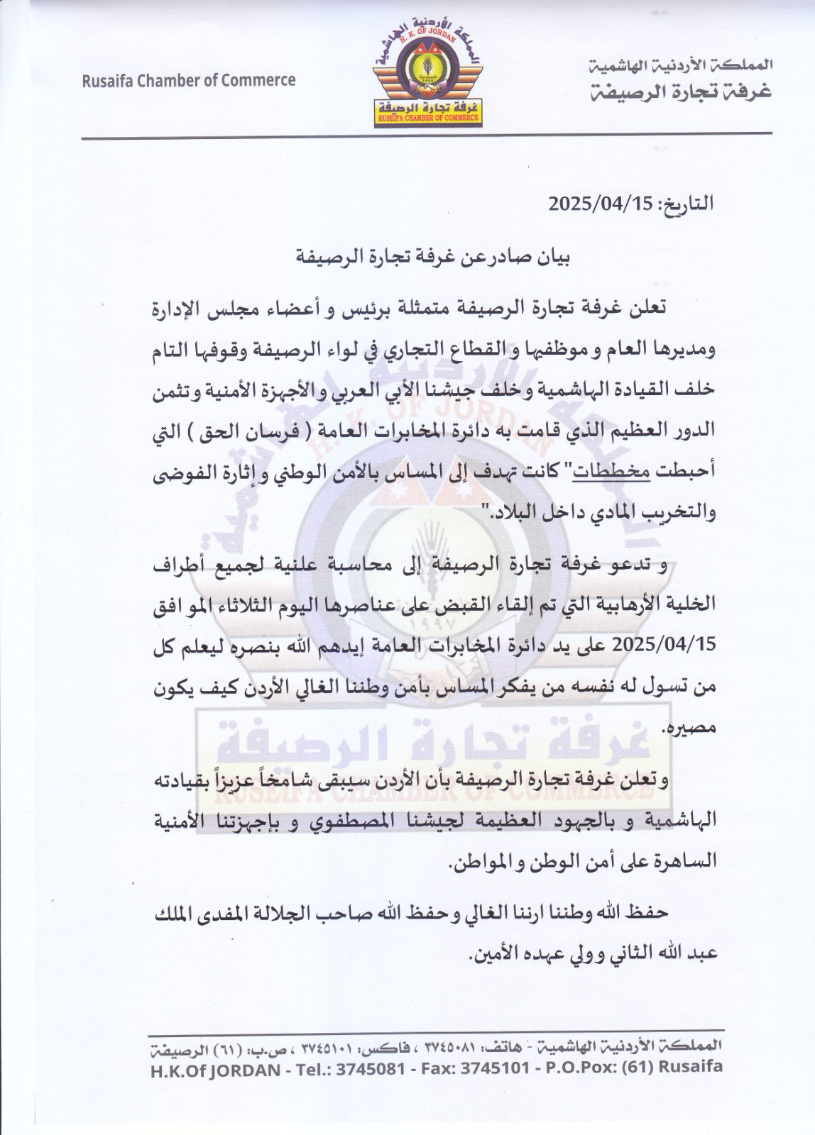 غرفة تجارة الرصيفة تستنكر الأحداث وتشيد بقدرة رجال الحق ..