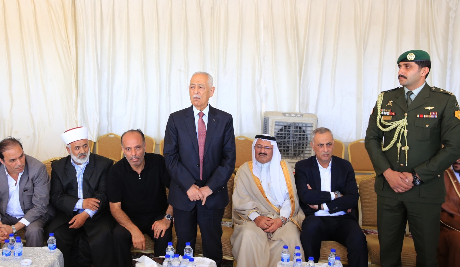 في مشهد يجسّد عمق العلاقة التي تربط القيادة الهاشمية بالعشائر الأردنية، قدّم معالي رئيس الديوان الملكي الهاشمي العامر، ومستشار جلالة الملك لشؤون العشائر، وعطوفة محافظ العاصمة، واجب العزاء باسم جلالة الملك عبدالله الثاني ابن الحسين وولي عهده الأمين سمو الأمير الحسين بن عبدالله الثاني، إلى سعادة الشيخ عناد الفايز وأبنائه، سعادة الشيخ فواز عناد الفايز، وسعادة محمد عناد الفايز، وسعادة بندر عناد الفايز، وسعادة طراد الفايز، وسعادة بدر عناد الفايز، وسعادة هيثم عناد الفايز، بوفاة فقيدهم الغالي الشيخ فايز عناد الفايز، الذي وافته المنية بعد حياة حافلة بالعطاء والكرم والانتماء.