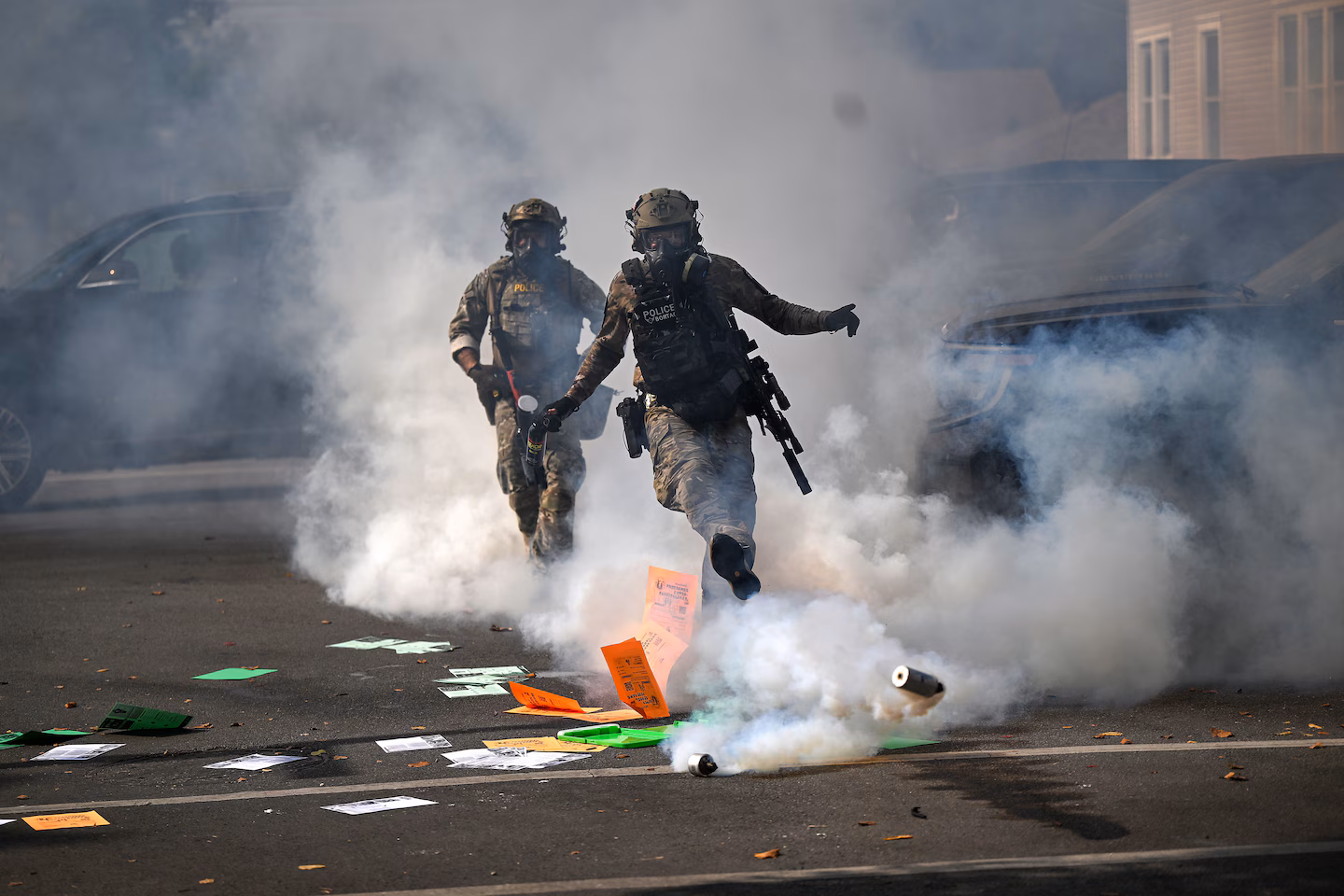 الوكالتان تقولان إن استخدام المواد الكيميائية ضروري لتفريق “محتجين عنيفين”، لكن النقاد يروْن أن ذلك قد ينتهك الأعراف القانونية لاستخدام القوة المصدر : The Washington Post