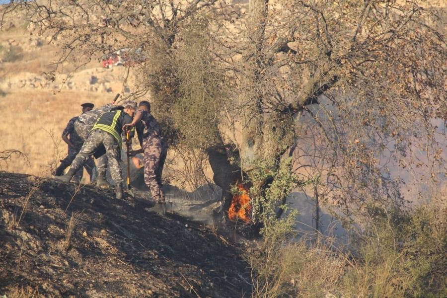 الدفاع المدني يخمد حريقا طال 1200 دونم من الأعشاب الجافة والاشجار والمحاصيل في محافظة اربد