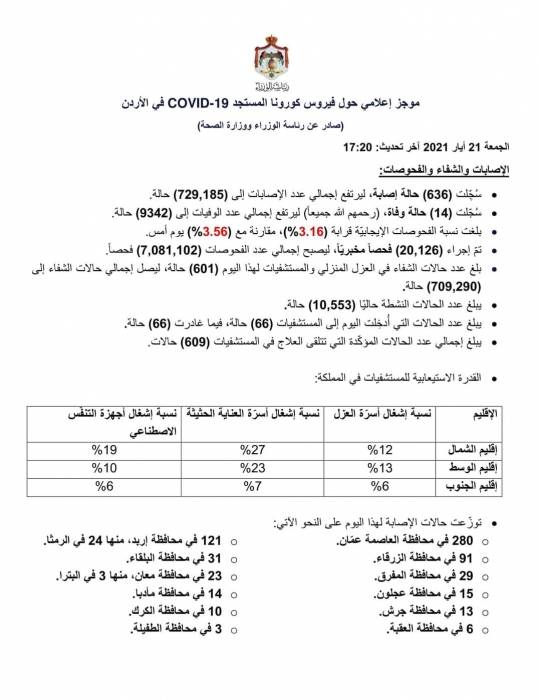 سُجِّلت (636) حالة إصابة بفايروس كورونا و سُجّلت (14) حالة وفاة، (رحمهم الله جميعاً)