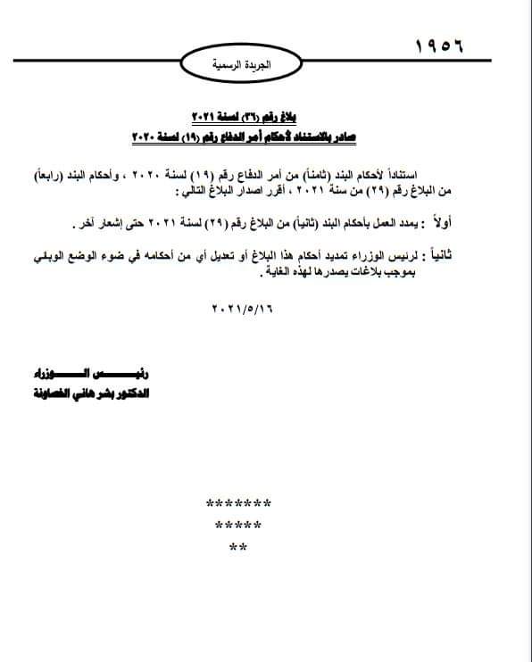 تمديد السماح للمطاعم ومحال الحلويات للساعة الثالثة لخدمة الدليفري وتمديد إغلاق النوادي الليلية والبارات