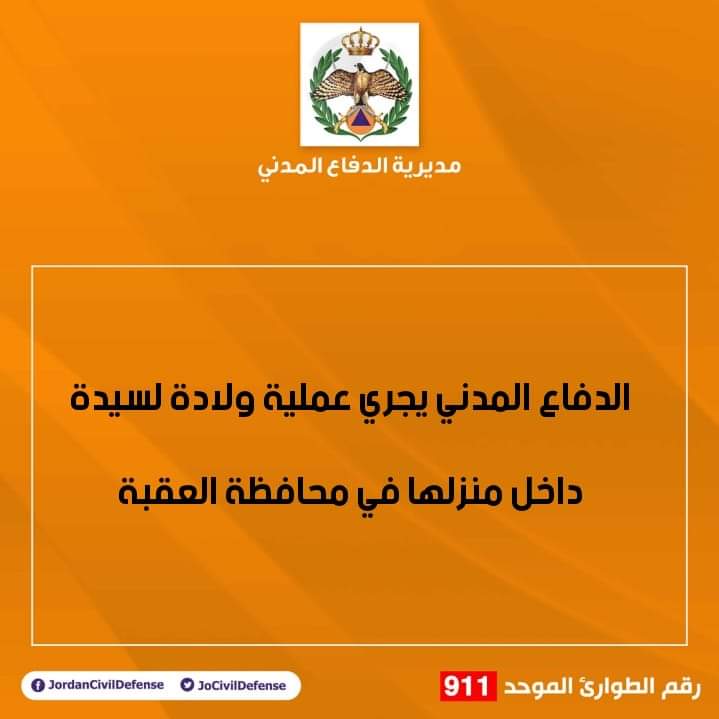 دفاع مدني العقبة يجري عملية ولادة لسيدة داخل منزلها