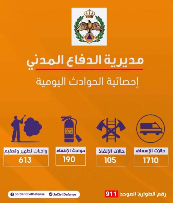 الدفاع المدني يتعامل خلال ال 24 ساعة الماضية مع 2618 حالة