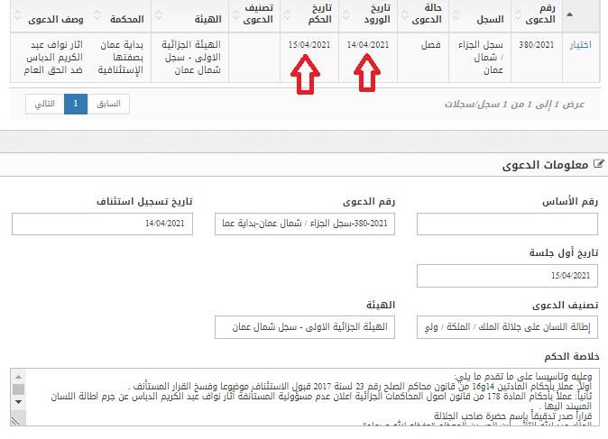 عدم مسؤولية المستأنفة آثار الدباس عن جرم اطالة اللسان