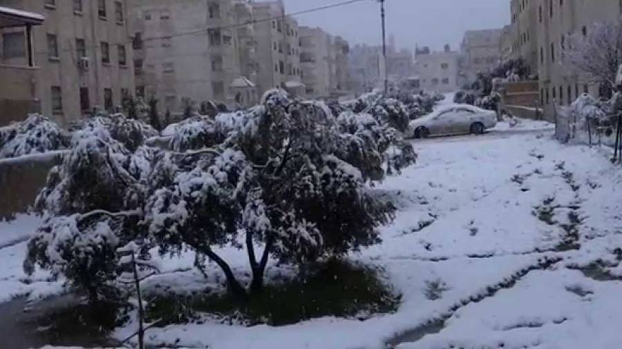بسبب اللعب في الثلج .. محاصرة العشرات من المواطنين في مركباتهم على طريق إربد