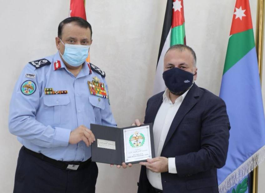 مدير الأمن العام اللواء الركن حسين الحواتمة يكرم رئيس جمعية إنتاج السيد بشار الحوامدة