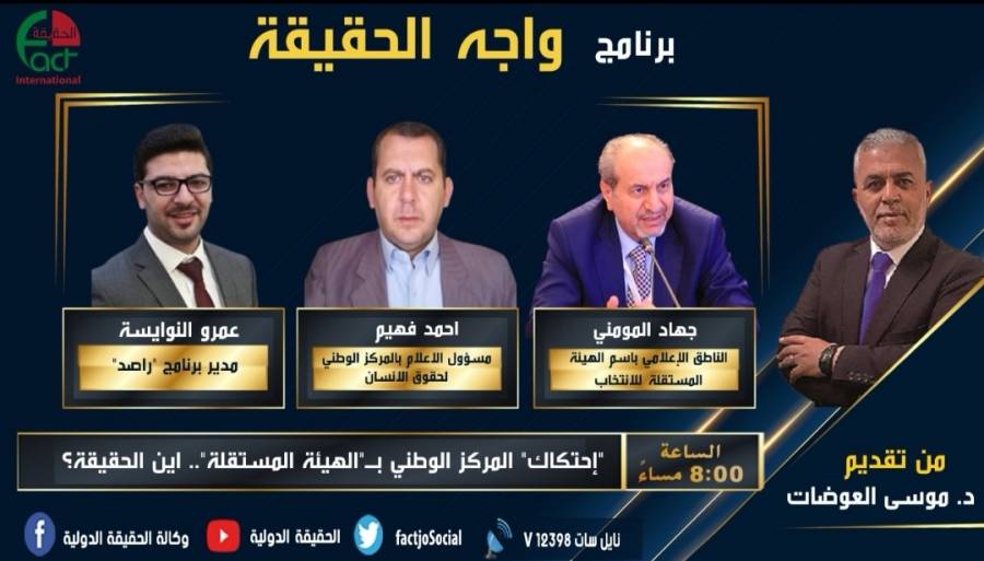 على قناة الحقيقة ومن تقديم العوضات .. (إحتكاك المركز الوطني بــ الهيئة المستقلة)