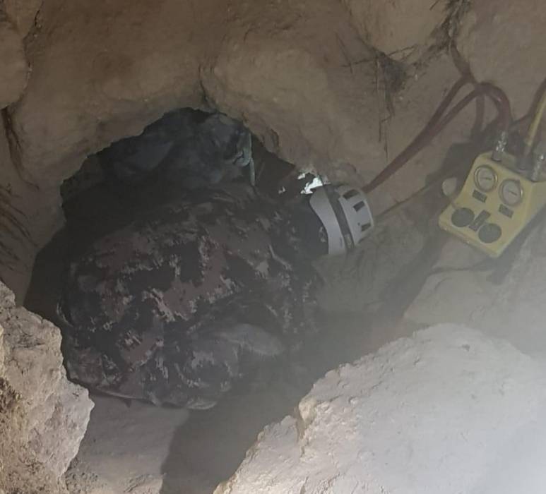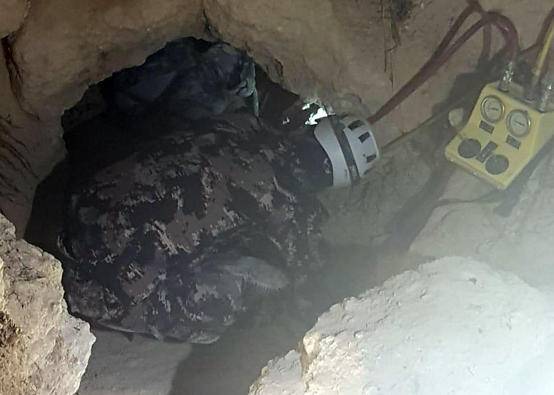 فريق البحث والانقاذ الدولي في الدفاع المدني، ينقذ شخص حوصر داخل شق صخري في منطقة ضاحية الرشيد ..