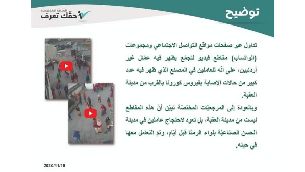 "حقك تعرف": مقاطع الفيديو المتداولة لتجمّع عمّال غير أردنيين ليس في العقبة