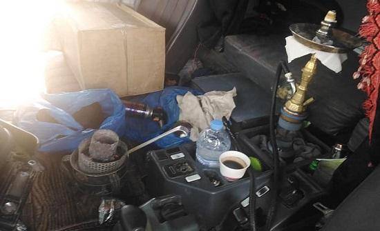ضبط سائق تريلا يدخن الارجيلة أثناء القيادة