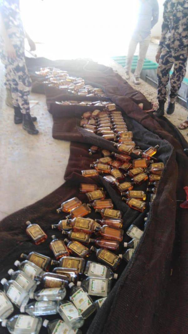 الجمارك تضبط مشروبات روحية مهربة ومخبئة في بيت شعر