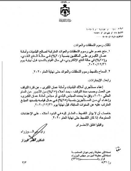 رئاسة الوزراء تتوسع في الإعفاءات على ضرائب الابنية والمسقفات وايجارات عقارات الأمانة والبلديات