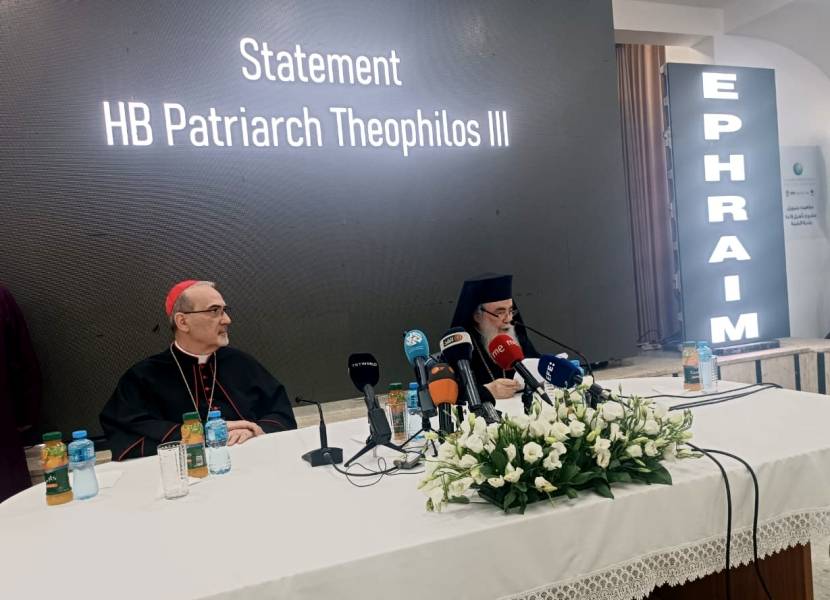 نيابة عن الملك البطريرك ثيوفيلوس الثالث يلقي كلمة خلال زيارة تضامنية إلى رام الله