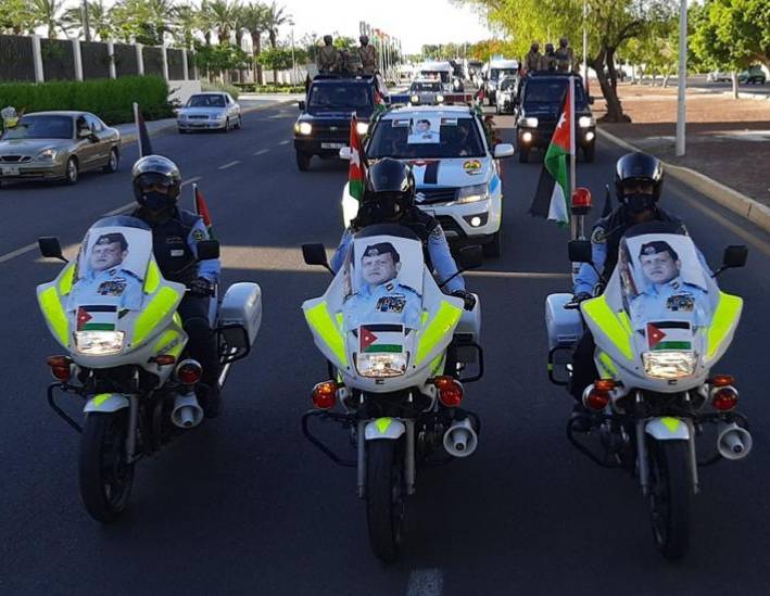 الأعلام الأردنية وصور جلالة الملك تُزين مركبات ومصفحات ودراجات الأمن العام والجيش العربي ابتهاجآ بعيد الاستقلال 74 .. صور