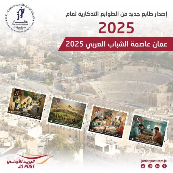 البريد الأردني يطرح طوابع تذكارية بعنوان عمان عاصمة الشباب العربي 2025