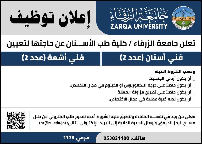 إعلان توظيف صادر عن جامعة الزرقاء..