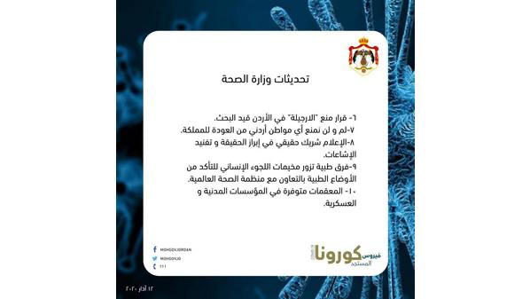 تعليمات الحجر المنزلي في الاردن