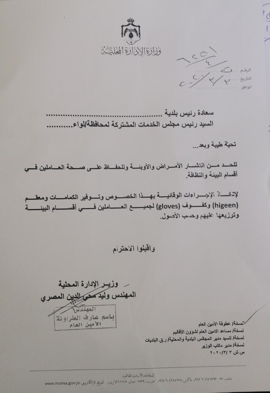 وزارة الإدارة المحلية تعمم على البلديات