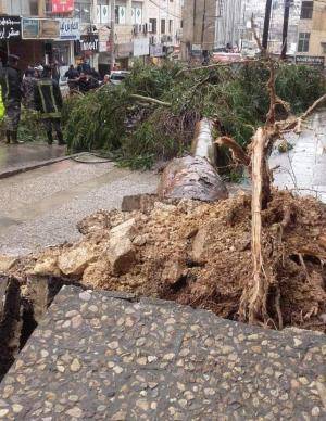 سقوط أشجار بفعل الرياح في عمّان.. صور