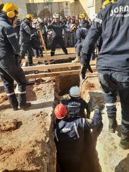 انقاذ عامل من انهيار خريبة السوق والبحث عن الثاني
