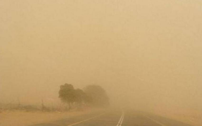 انعدام مدى الرؤية الأفقية على الطريق الصحراوي بسبب الغبار الكثيف