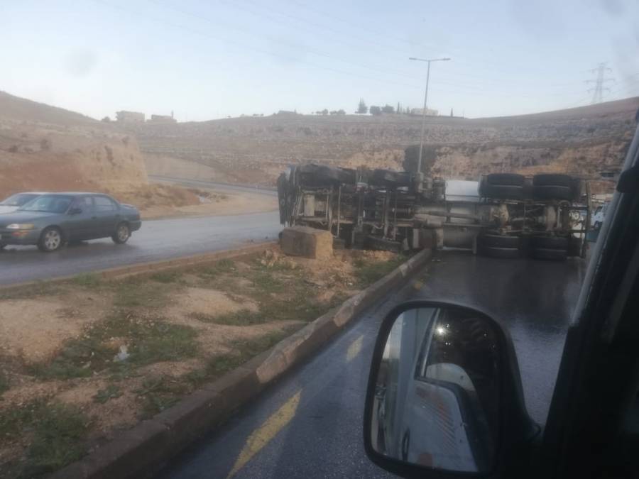 إصابة شخصين اثر حادث تدهور شاحنة في محافظة العقبة