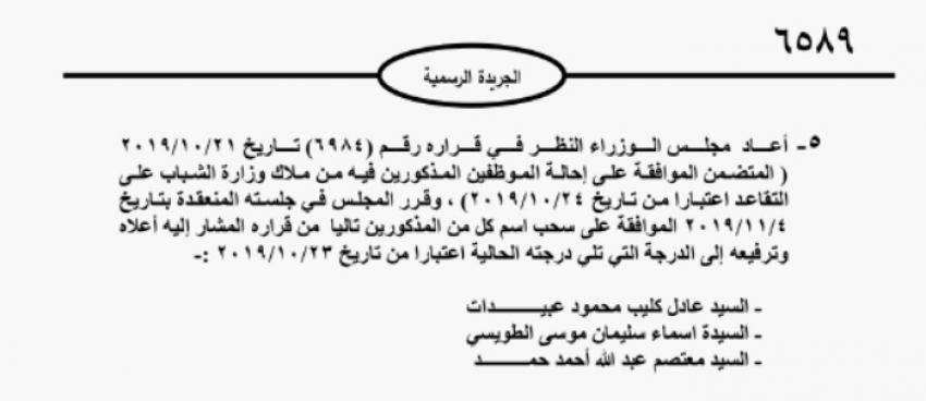 بالاسماء...اعادة موظفين لعملهم وترفيعهم للدرجة الاخرى