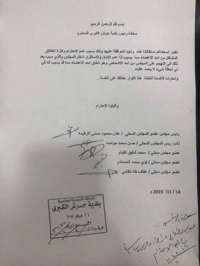بالوثيقة ... استقالات جماعية في بلدية جرش رغم نفي الرئيس !