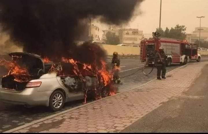 تماس كهربائي يتسبب بحرق سيارة " كامري " بالعارضة
