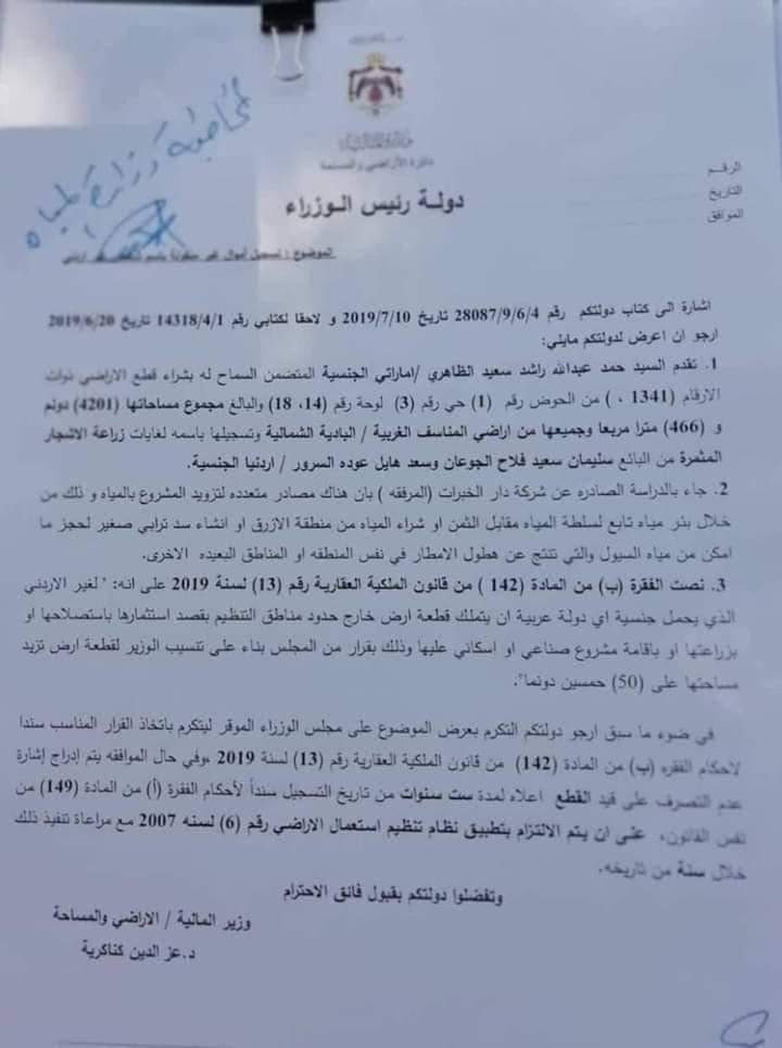 هل يوضح مستشار الملك سعد هايل السرور حقيقة بيع اراضي البادية الشمالية لمستثمر اماراتي - وثيقة