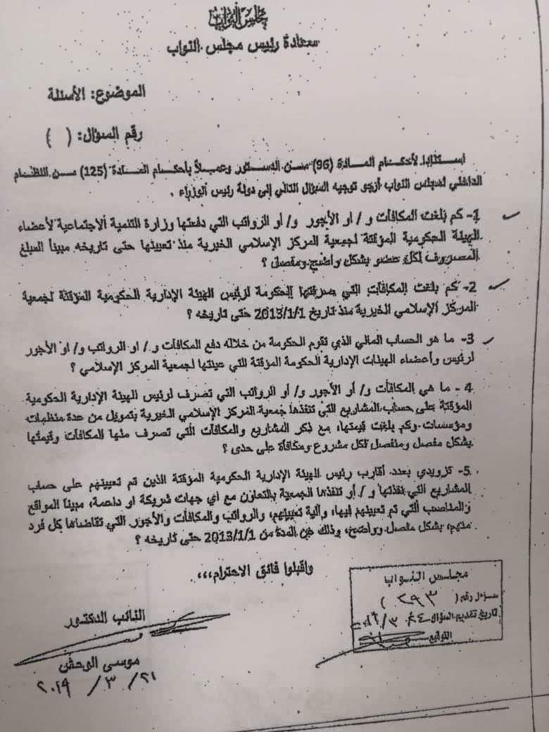 بالوثائق... الحكومة تهدر مئات آلاف الدنانير مكافآت للهيئة المؤقتة لجمعية المركز الإسلامي الخيرية