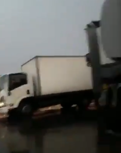 بالفيديو .. حوادث وانزلاقات للشاحنات على الطريق الصحراوي بسبب المنخفض الجوي