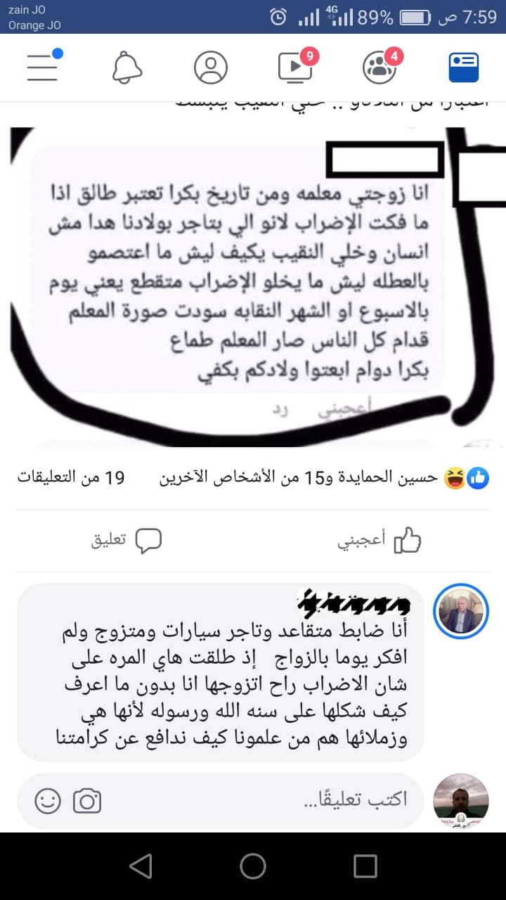 ولعت..مواطن يطلق زوجته " المعلمة " لعدم فك الاضراب - صورة