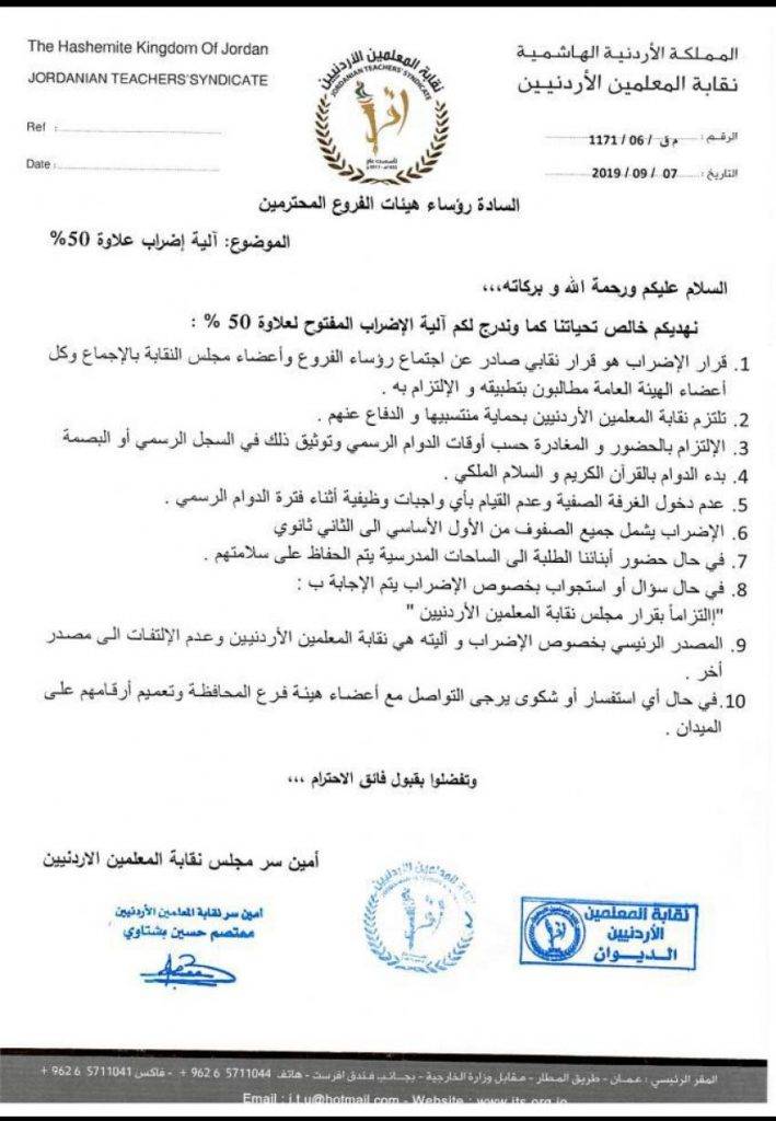 المعلمين" تعلن آلية إضراب علاوة الـ50%