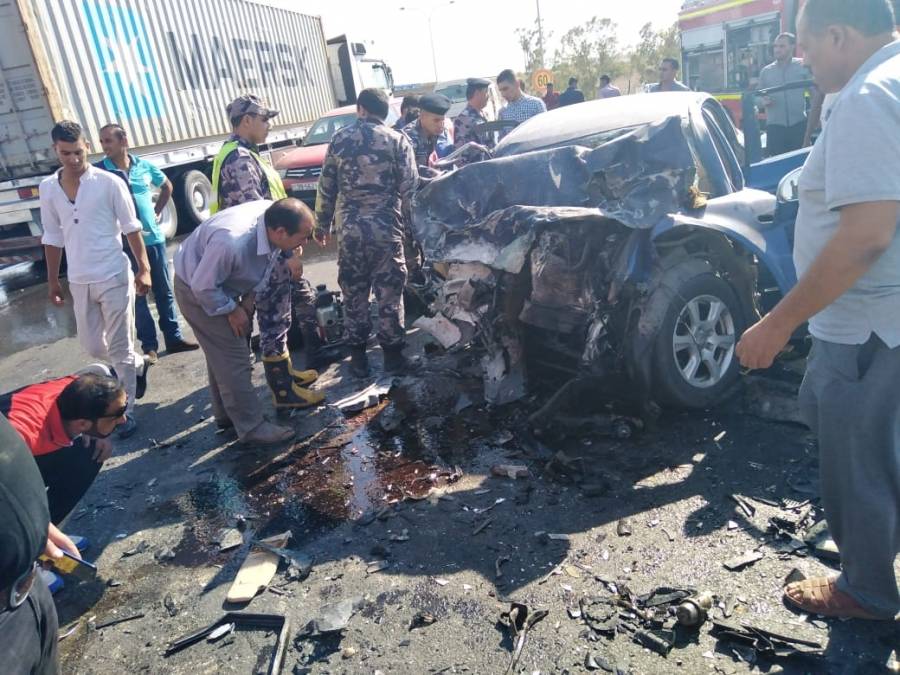 وفاه خمسة أشخاص وإصابة ثلاثة آخرين في حادث تصادم على الصحراوي/صور