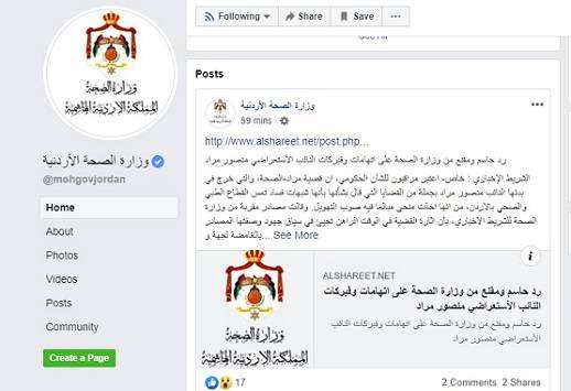 وزارة الصحة تسلط الضوء على تقرير "الشريط الاخباري" عبر صفحتها الرسمية.. اتهامات وفبركات النائب منصور
