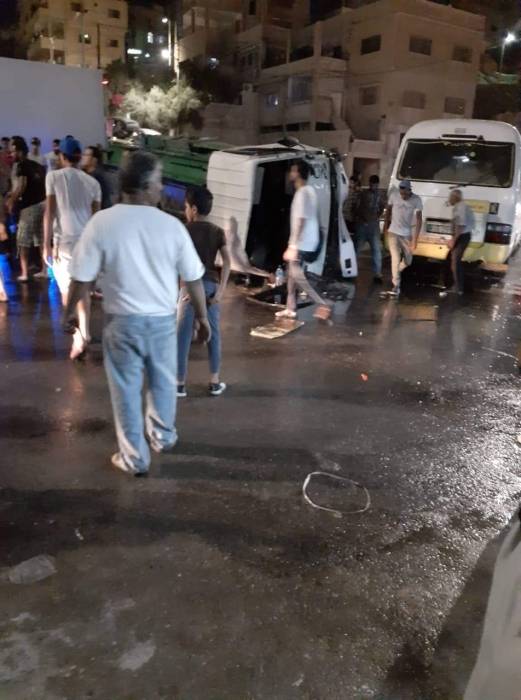 "صور " انقلاب صهريج مياه في الزرقاء يتسبب في اصابات