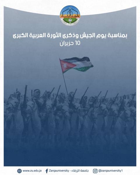 جامعة الزرقاء تهنئ جلالة الملك في يوم الجيش وذكرى الثورة العربية الكبرى..