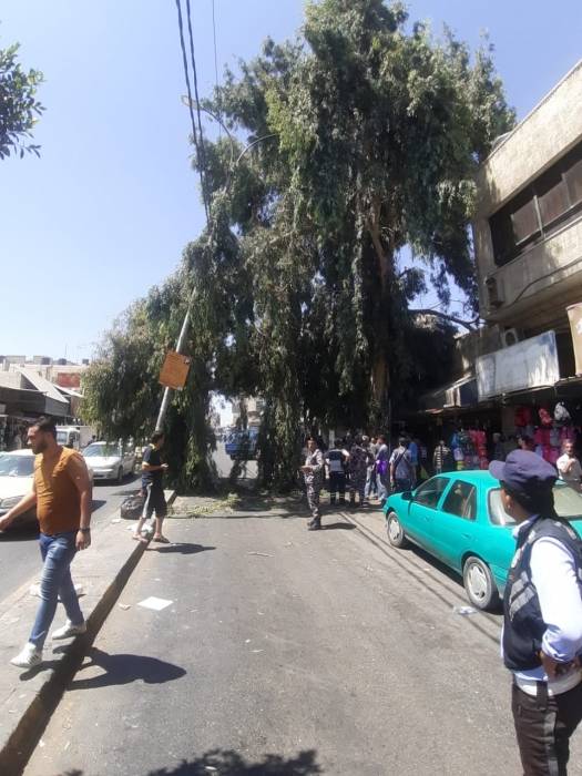 الزرقاء : تحويل السير باتجاه مجمع الدوائر بعد سقوط شجرة على عامود كهرباء / صور