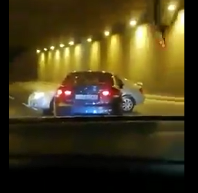 ضبط سائقي مركبتين لاحقا وصدما بعضهما في أحد الشوارع وسط العاصمة "فيديو"