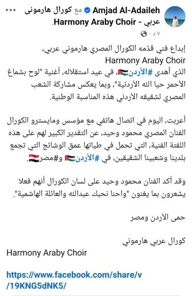 كورال هارموني عربي للسفير العضايلة: احنا نحبك عبدالله والعائلة الهاشمية