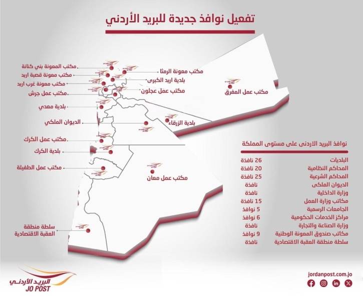 تنفيذاً لقرار رئيس الوزراء .. البريد الأردني يفعّل 110 نوافذ بريدية في الوزارات والمؤسسات الحكومية