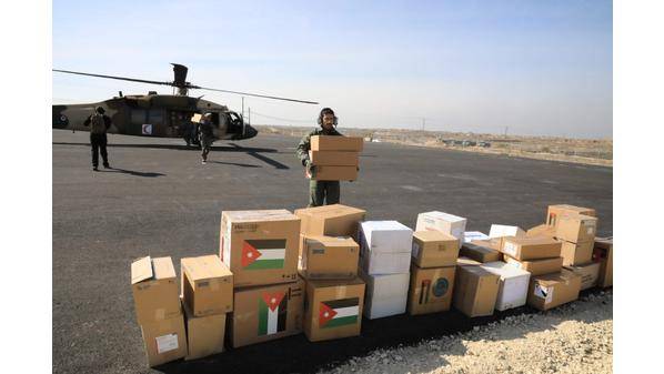 16 مروحية أردنية تحمل مساعدات جديدة إلى قطاع غزة - صور