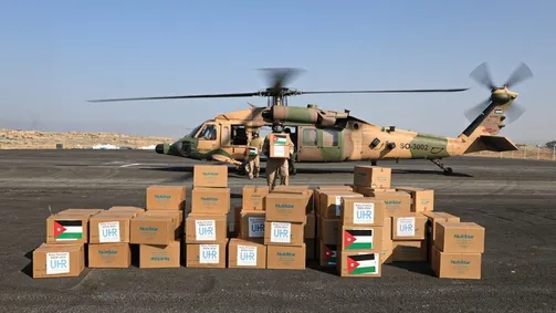 جانب من مشاركة القوات الجوية الإيطالية في الجسر الجوي الأردني إلى غزة