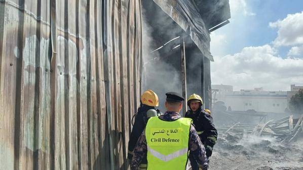 الدفاع المدني يخمد حريق مخازن مفروشات في منطقة المصدار