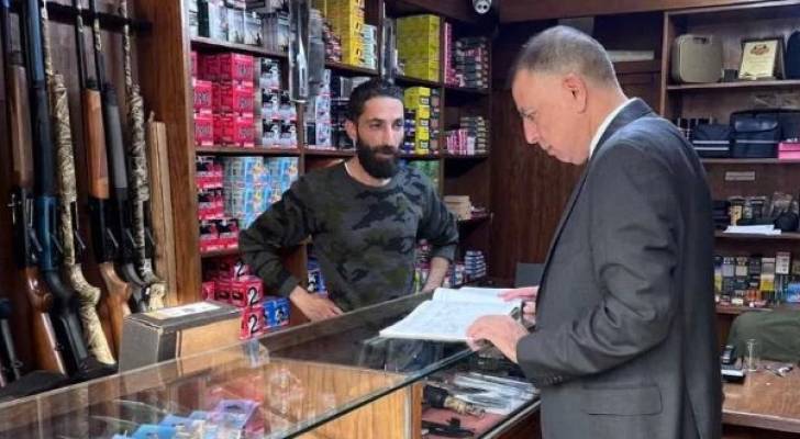 الفراية يتفقد محلات الأسلحة والذخائر في وسط البلد بعمان بشكل مفاجئ