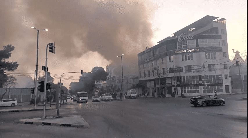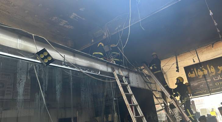 حريق مقهى باربد وتصاعد الدخان في المنطقة